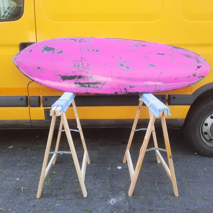 5'10 egg twin fin with channels/ Ratstyle resin tint
